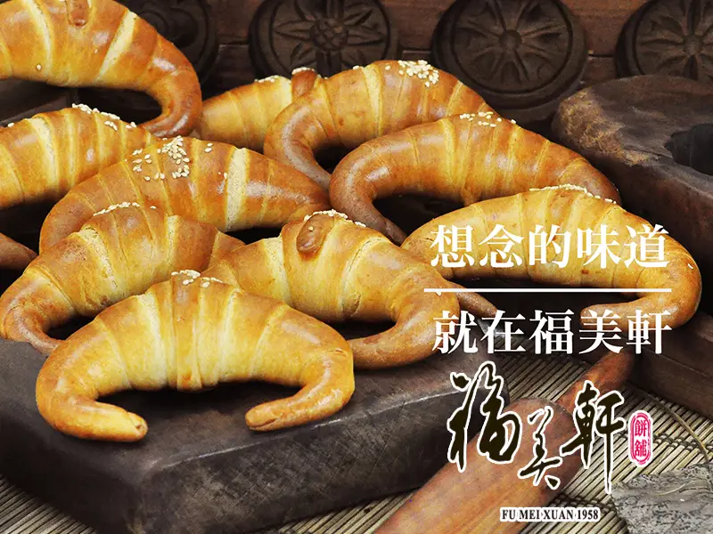 福美軒餅舖,創立於1958年,至今店齡已超過60年,目前由第三代加入經營。金牛角麵包據說是羅福清夫婦在一次旅行中,飛機上吃到的一種菲律賓麵包,故而興起將這種麵包和中式漢餅做一種結合、改良,經過多次努力的嚐試,終於突破製作技術的困難,研究出外酥內軟螺旋層次又濃郁的金牛角麵包。
