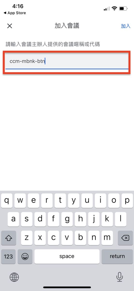 會議代碼為上面視訊通話連結的最後方(黃色底部分)